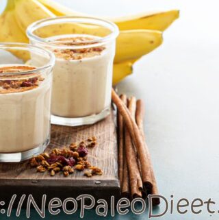 Niet dat je direct een recept zou nodig hebben. Gooi op goed geluk banaan met melk en wat andere ingrediënten (plantaardige melk, kaneel, granola – inderdaad!, een aardbei, sinaasappelsap, ananas uit blik, wat citroensap of ander zuurder fruit, wat dadels om het weer zoet te maken, ijsblokjes…) in een stevige blender, mix, proef, voeg meer banaan, zoet of zuur toe, mix opnieuw en klaar.