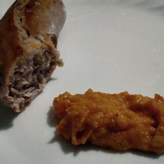 Dan maar de paleo denkpet opgezet: wat is er lekker bij worst? Tomatenketchup uiteraard en… appelmoes. Even een potje bovengehaald, een appel en een tomaat erin, stoven, kruiden, wat water erbij en pruttelen, pruttelen, pruttelen… Duidelijk een lekkere , zoete, tomatensaus.